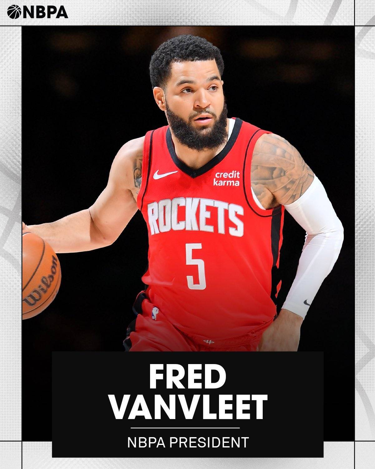 北京时间2025年7月14日,NBA球员工会官方宣布,火箭后卫弗雷德-范弗里特当选球员工会主席(NBPA)。另外,官方还公布了本届球员工执行委员会的全部九位成员,具体如下: